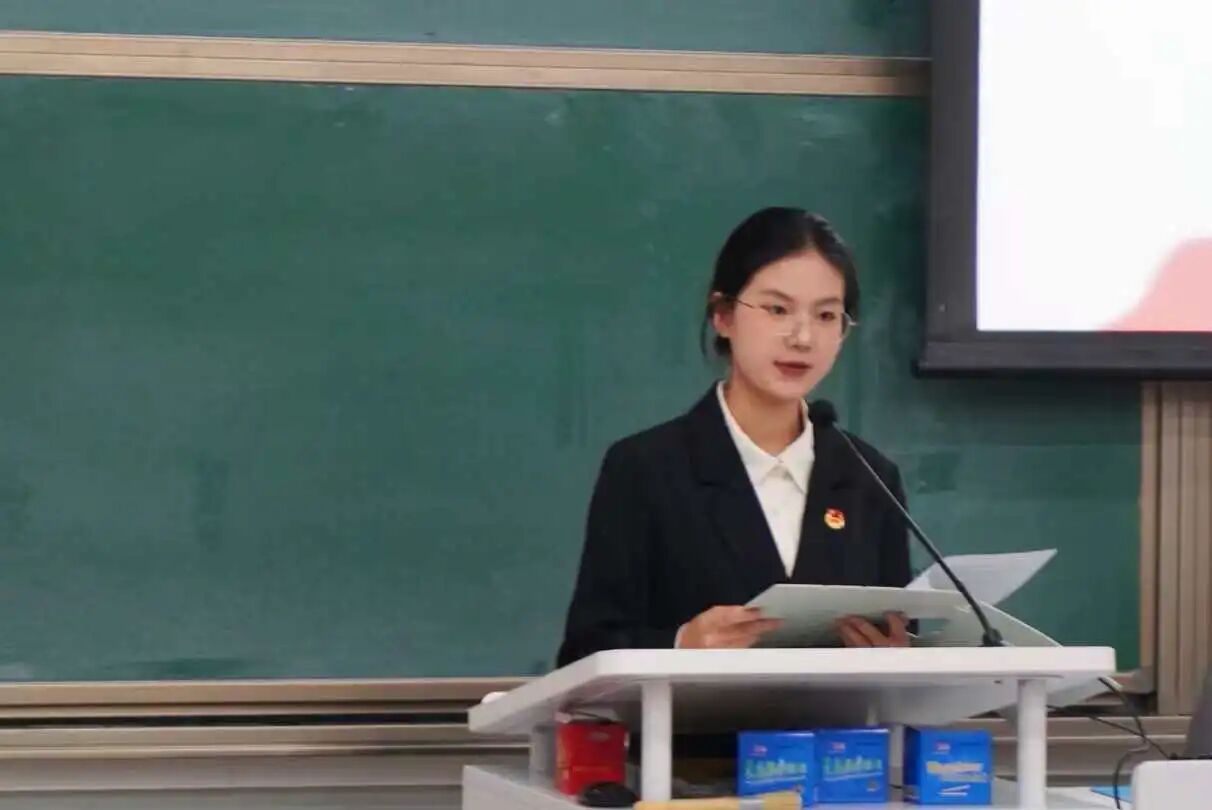 金秋送爽,传递青春理想,国歌激昂,指引前进方向。新闻传播学院党委副书记祁雪晶老师在国歌奏唱后致辞,她强调团学组织要始终发挥带头骨干作用,希望团学组织将全心全意为学生服务的宗旨落到实处,表达了对团学组织建设的深刻要求和对同学生活的殷殷关切。