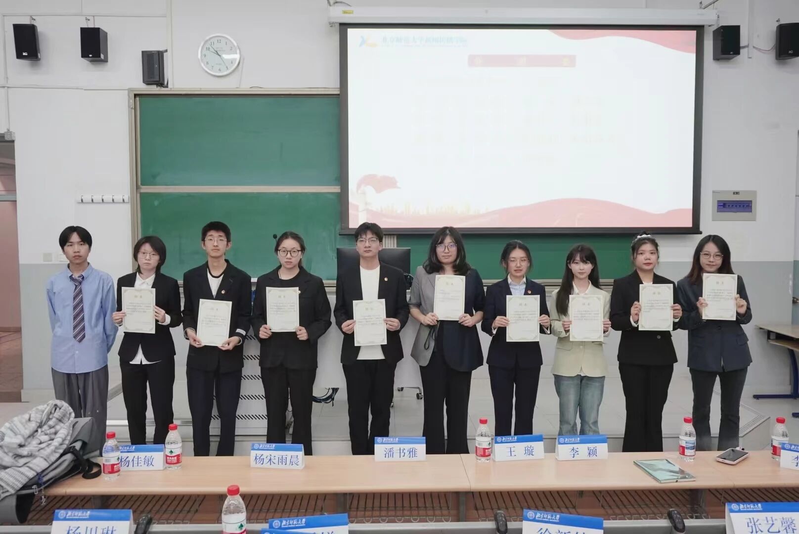 统计选票期间,大会筹备委员会主任林九岑宣布了北京师范大学新闻传播学院团学组织新一届部长级学生干部名单,学院学生事务助理闫鹏翔为他们颁发聘书。