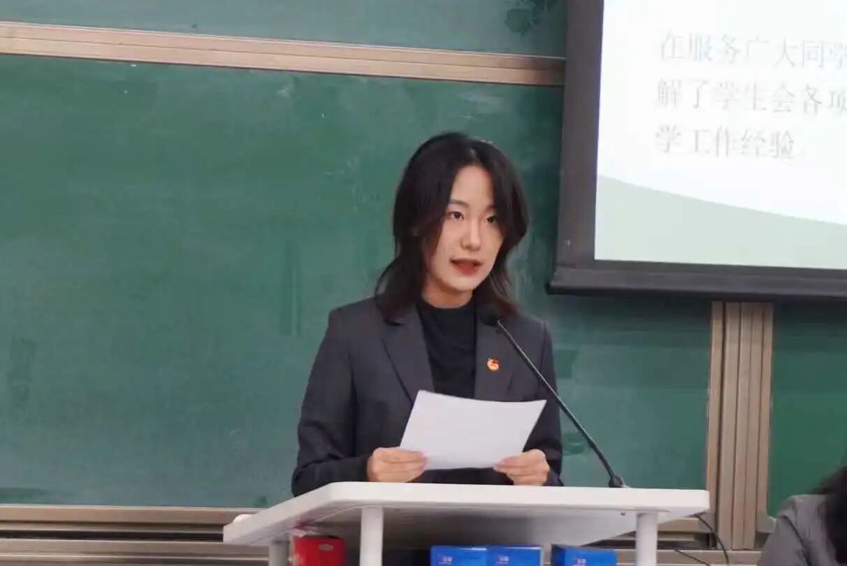 选票统计完成后,林九岑宣布了新一届团委副书记、学生会主席团成员和研究生会主席团成员竞选结果,学院学生事务助理闫鹏翔为他们颁发聘书。