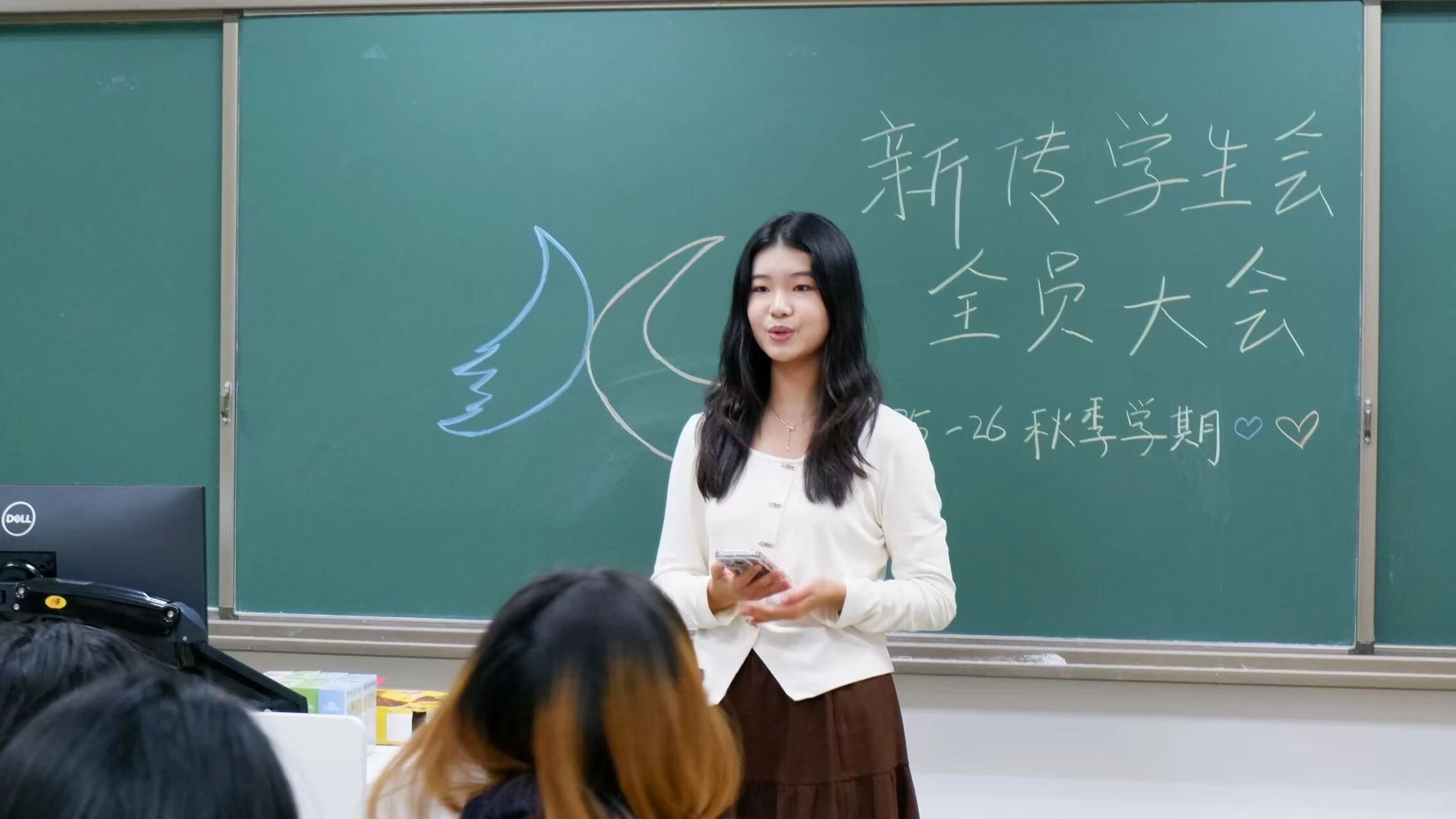 2025年10月31日晚20:30,北京师范大学新闻传播学院学生会全体成员在教二302齐聚一堂,召开2025-2026学年秋季学期学生会全员大会。本次大会由学生会公关部部长阮思媛、张熙然主持。