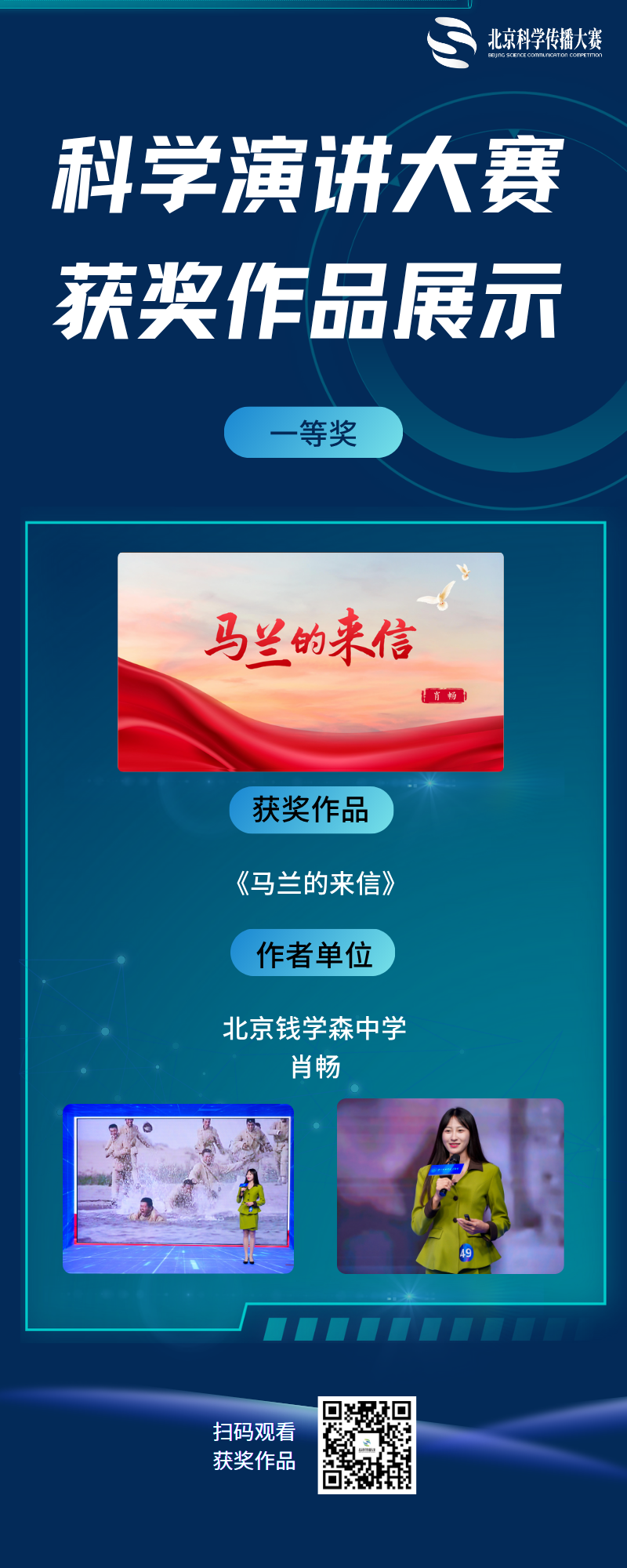科学演讲赛道重点面向大学生和青年科技工作者群体征集围绕科学家精神、科学精神、科学思想和科学方法等选题方向的演讲作品,演讲形式不限。鼓励科学脱口秀和表现科学内涵的创新形式,作品应是具有创新文化内涵的优质内容。
