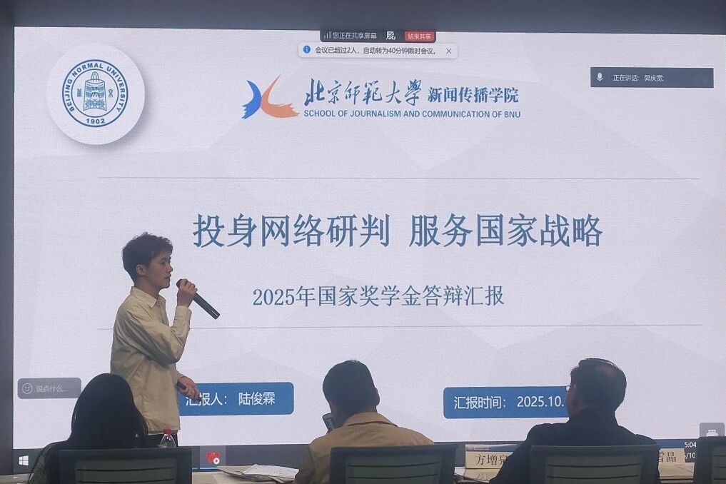 2025年10月11日,北京师范大学新闻传播学院在虚拟演播厅成功举办了2024-2025学年国家奖学金评审答辩活动。